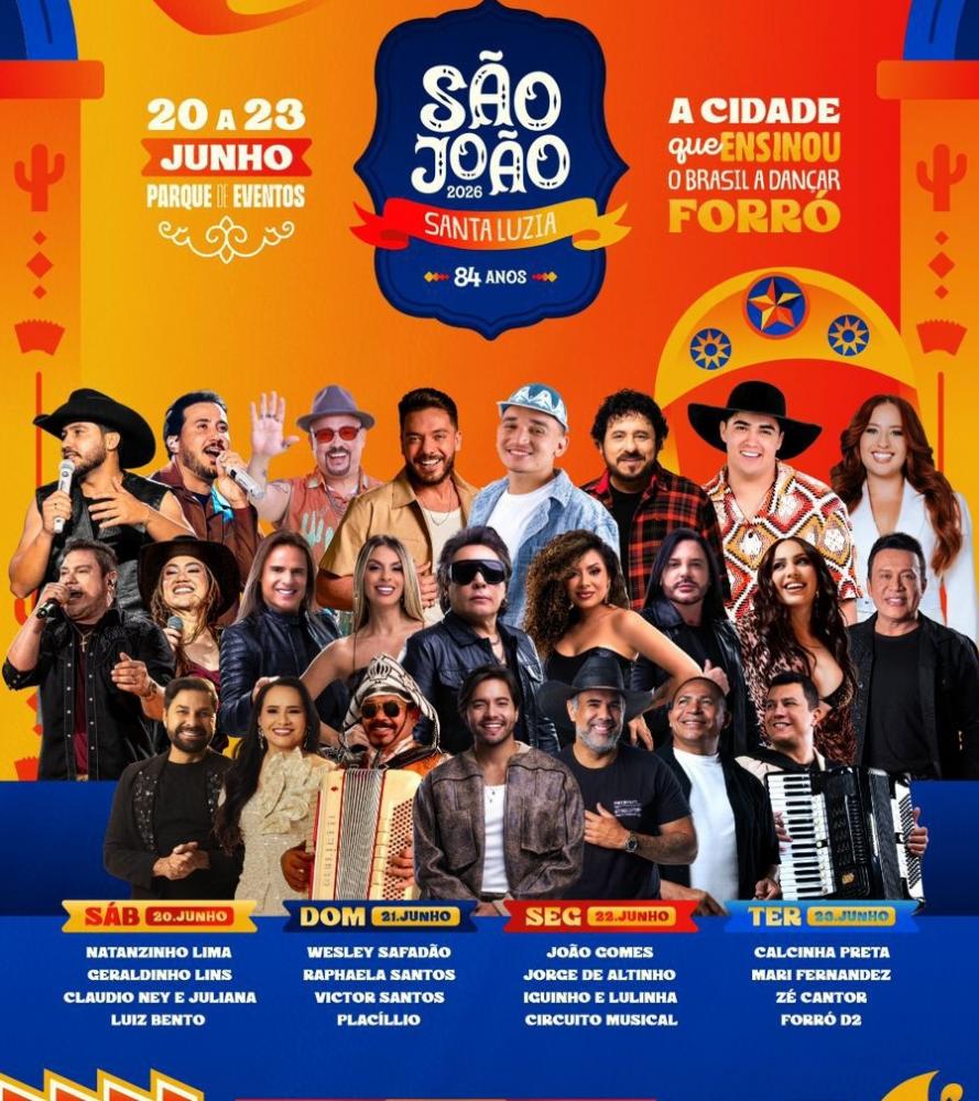 A Prefeitura de Santa Luzia confirmou para o próximo sábado (4), às 19:00 horas, o lançamento oficial da programação do tradicional São João 2026. O anúncio foi feito pelo prefeito Henry Lira por meio de suas redes sociais.